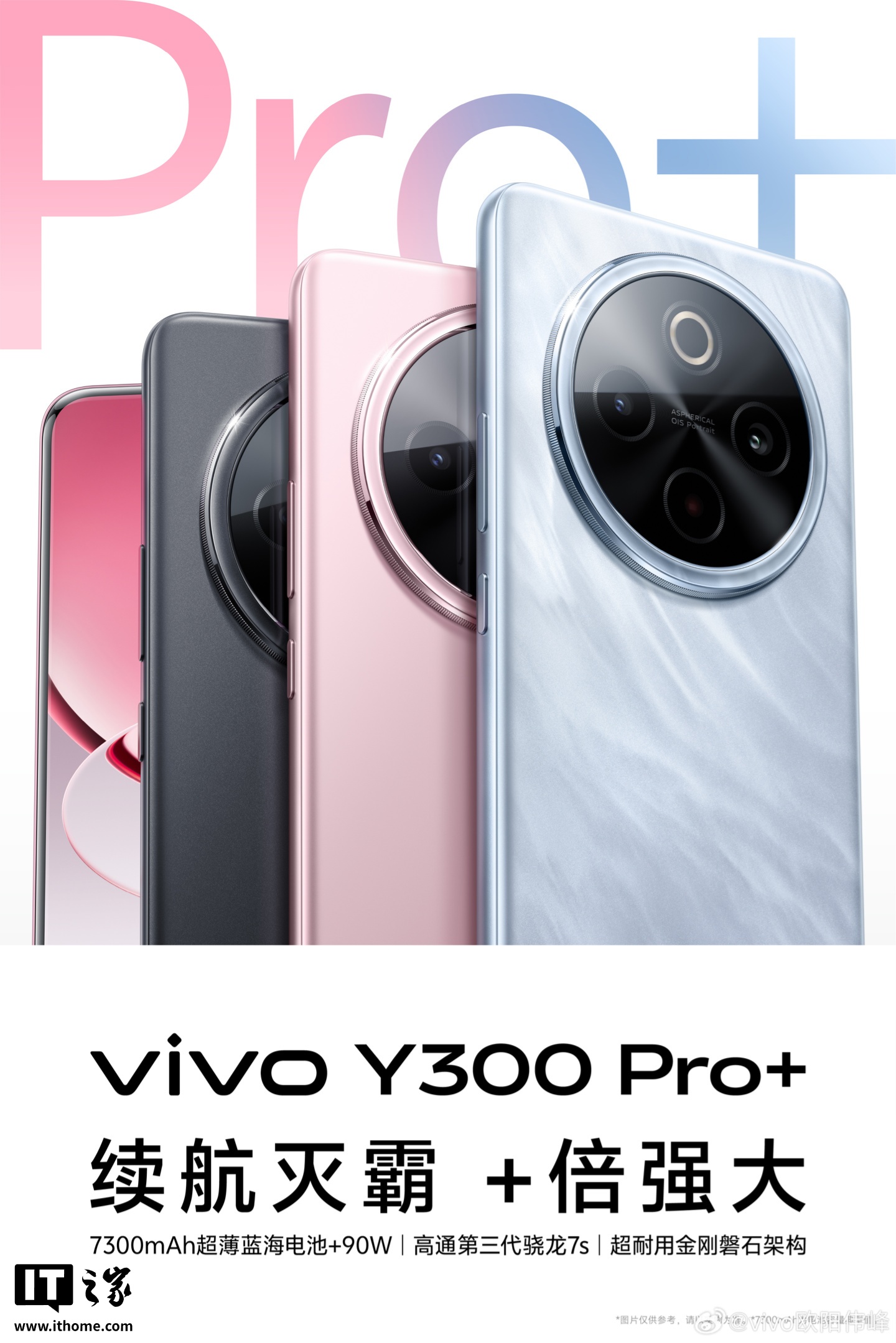 据IT之家今日早些时候报道,vivo Y300 Pro+ 手机 v 将采用金刚磐石架构、搭载高通第三代骁龙 7s 处理器、首发 vivo 史上最强的 7300mAh 超薄蓝海电池(支持 90W 快充)。另外,新机还将支持更丰富的职业模式。