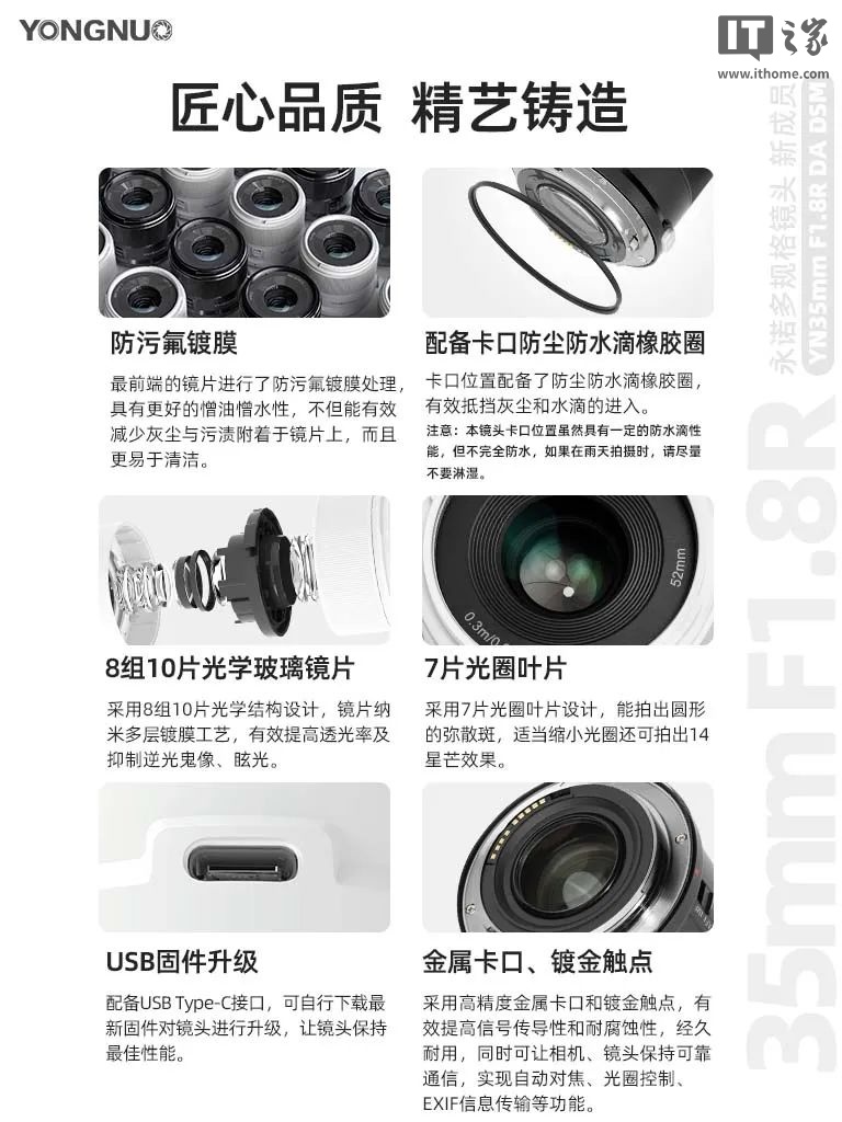 IT之家 3 月 25 日消息,永诺今日发布了一款多规格卡口镜头 35mm F1.8R,这是一款 APS-C 画幅镜头,等效约 56mm,首发价 699 元,现已上架开售。