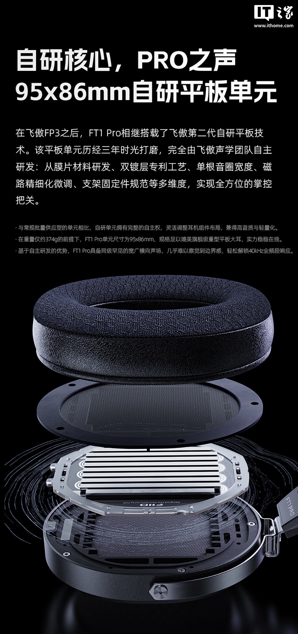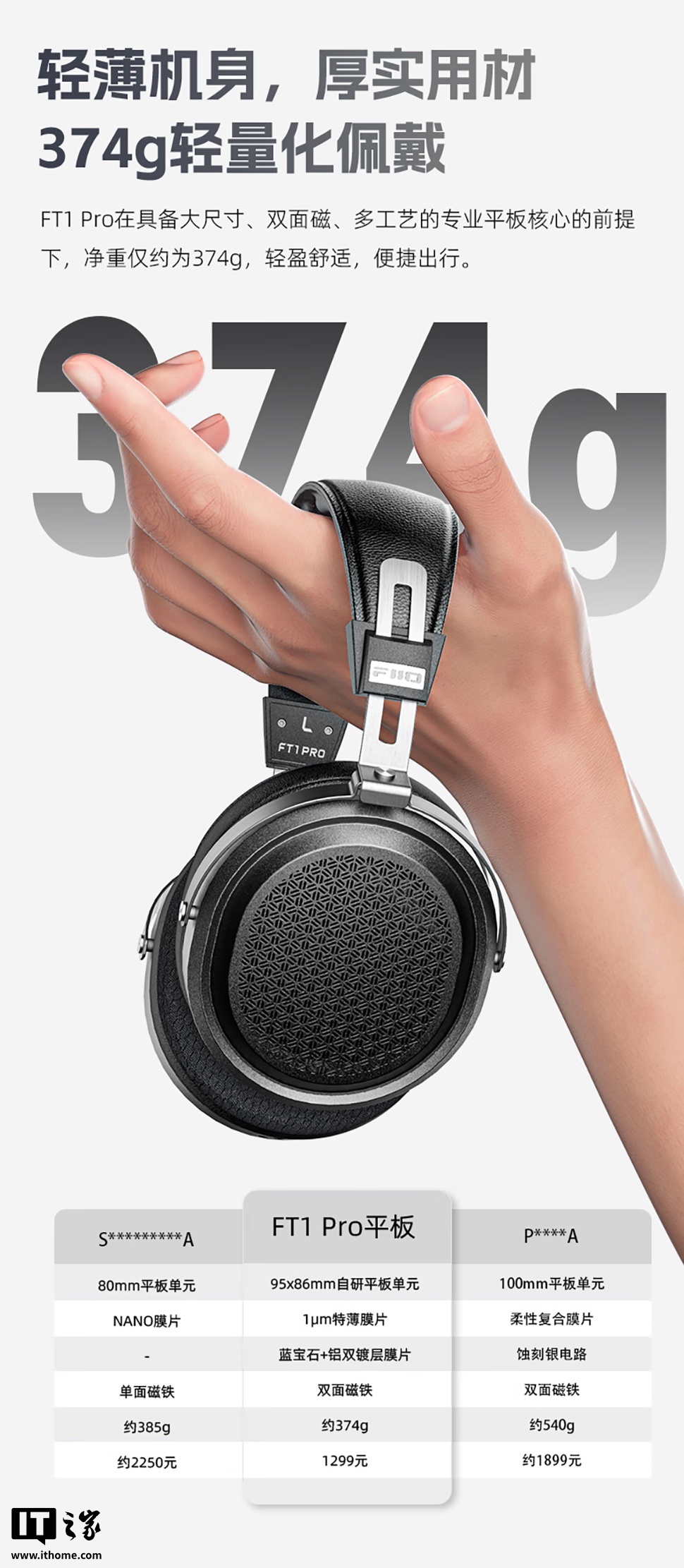 据介绍,飞傲 FT1 Pro 该款耳机重约 374g;头梁有 0~11 格共 12 级调整范围,采用麂皮绒布材料清爽透气;耳机还采用 3 轴自适应转向设计,可适配不同尺寸头围。