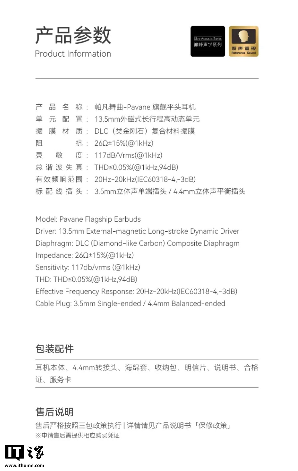 IT之家 3 月 25 日消息,水月雨预热旗下“帕凡舞曲 Pavane”旗舰平头耳机将于明天上午 10 点首销,定价为 1999 元。