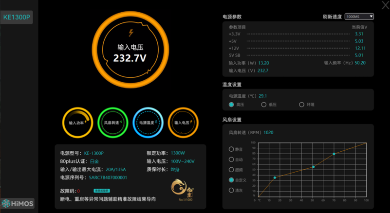 此外,数字技术的导入也意味着 PC 主机能通过软件和接口对电源的运行精细感知和调控。在鑫谷数字电源中,用户能利用 HIMOS 软件对多点温度、整机负载、电源运行模式和温控曲线等进行调整。