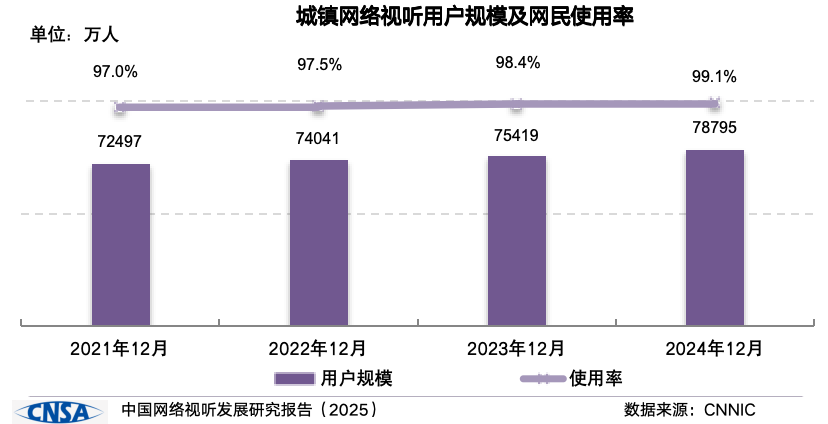 《报告》显示,2024 年我国网络视听行业市场规模高达 12226.49 亿元,同比增长 6.1%。截至 2024 年 12 月,我国网络视听用户规模达 10.91 亿人,同比增长 1722 万人。