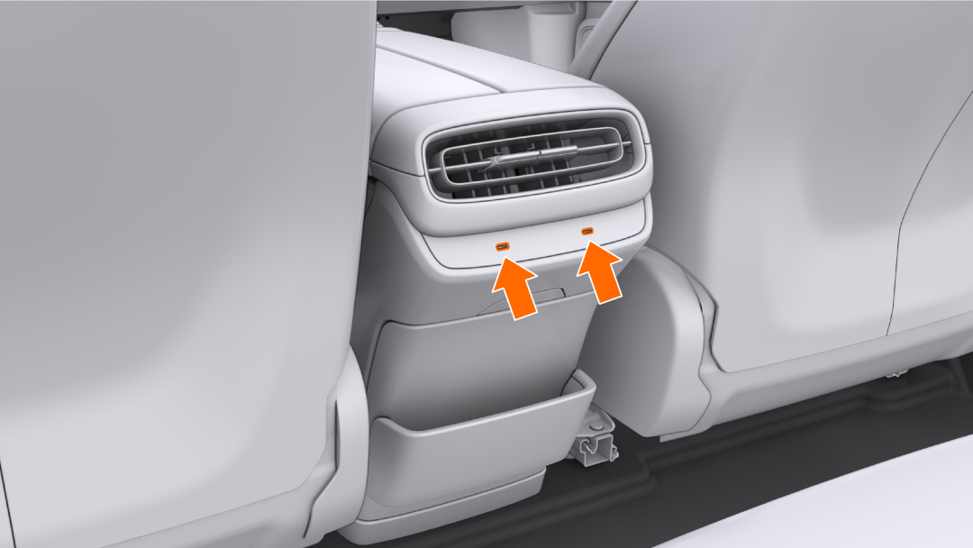 后排有两个 Type-C 接口,位于扶手箱后部,仅支持充电,最大输出功率均为 18W。