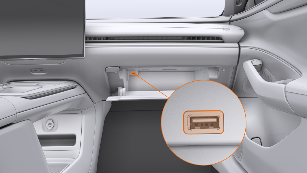 手套箱内设置有一个 USB 接口,用于连接哨兵模式和行车记录 U 盘,进行数据传输。