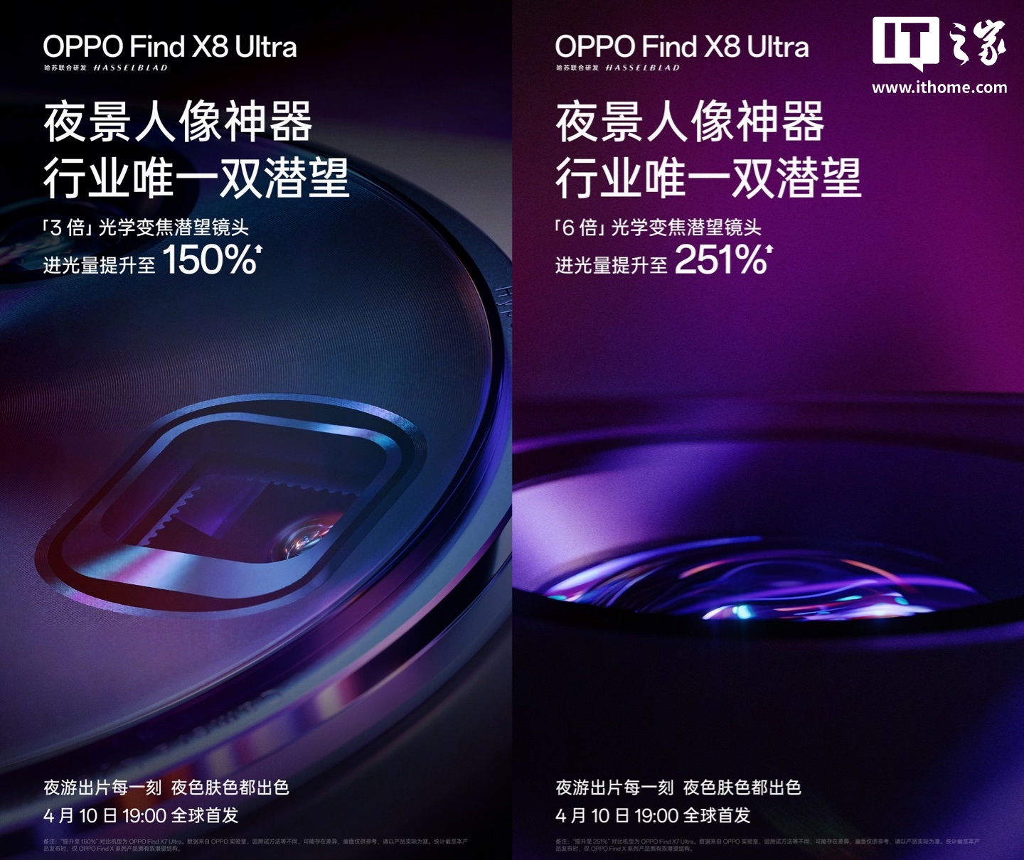 IT之家 3 月 27 日消息,OPPO Find X8 Ultra 手机将在 4 月 10 日发布,新机将搭载骁龙 8 至尊版芯片,配备 6100mAh 电池,支持 100W 快充。