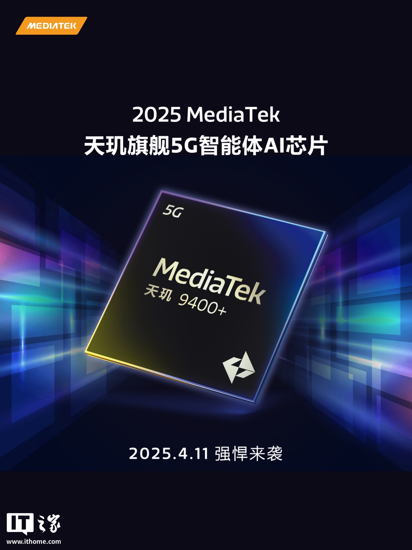 IT之家 3 月 27 日消息,联发科今日宣布将在今年 4 月 11 日举行的天玑开发者大会 2025 上发布旗舰 5G 智能体 AI 芯片 —— 天玑 9400+。