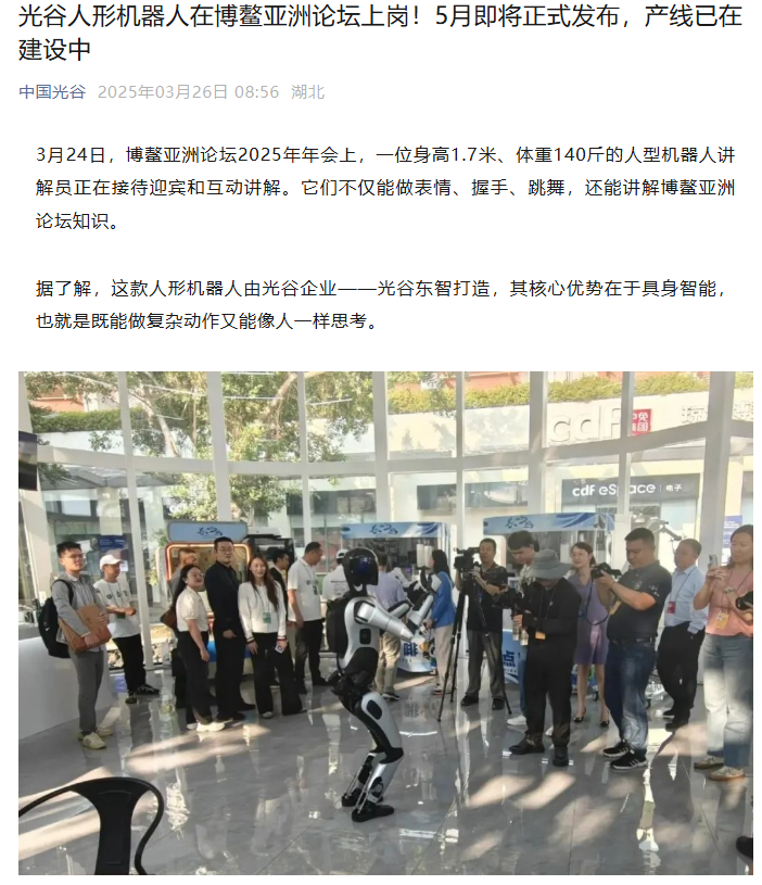 据武汉东湖新技术开发区管理委员会,这款机器人由湖北企业光谷东智打造,其核心优势在于具身智能,也就是既能做复杂动作又能像人一样思考。