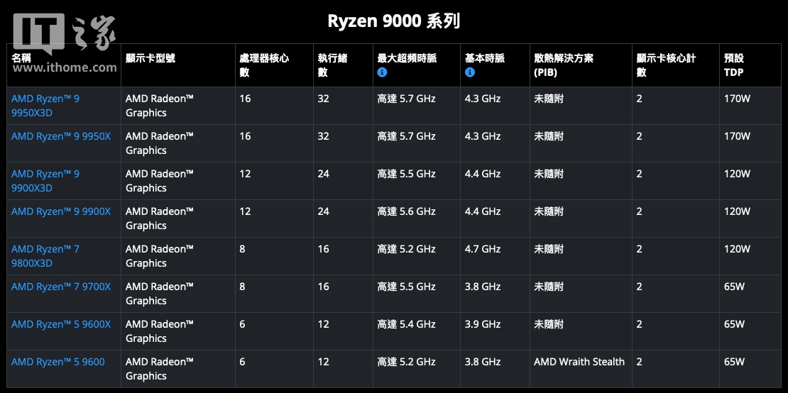 根据 AMD 官方介绍,9600 盒装版本附有“幽灵-潜行者(Wraith Stealth)”官方散热器,而 9600X 则没有。