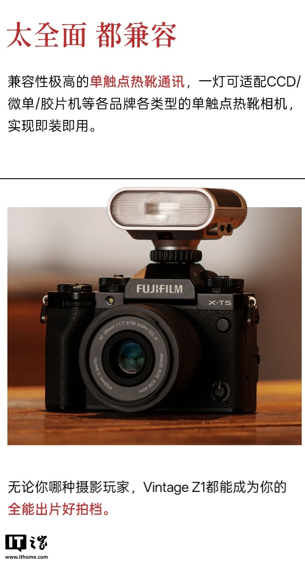 IT之家 3 月 27 日消息,唯卓仕今日发布了 Vintage Z1 闪光灯,该闪光灯主打复古设计,轻巧便携。