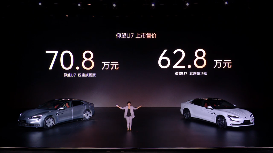 IT之家 3 月 27 日消息,比亚迪仰望 U7 今晚正式上市,新车定位“百万级新能源旗舰轿车”。仰望 U7 是该品牌的第三款车型,配备天神之眼 A-高阶智驾三激光版(DiPilot 600)、云辇-Z 智能悬浮车身控制系统、易四方四电机系统、全数字底盘、后轮转向等,提供四座及五座两种座椅布局,提供纯电及插电混动两种动力类型。仰望 U7 四座旗舰版上市售价为 70.8 万元,仰望 U7 五座豪华版为 62.8 万元。