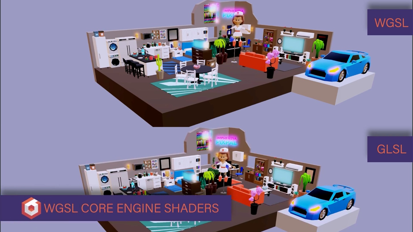 新版原生支持 WebGPU,核心着色器全面迁移至 GLSL / WGSL,移除转换层,运行效率翻倍,并支持自定义 WGSL 着色器。