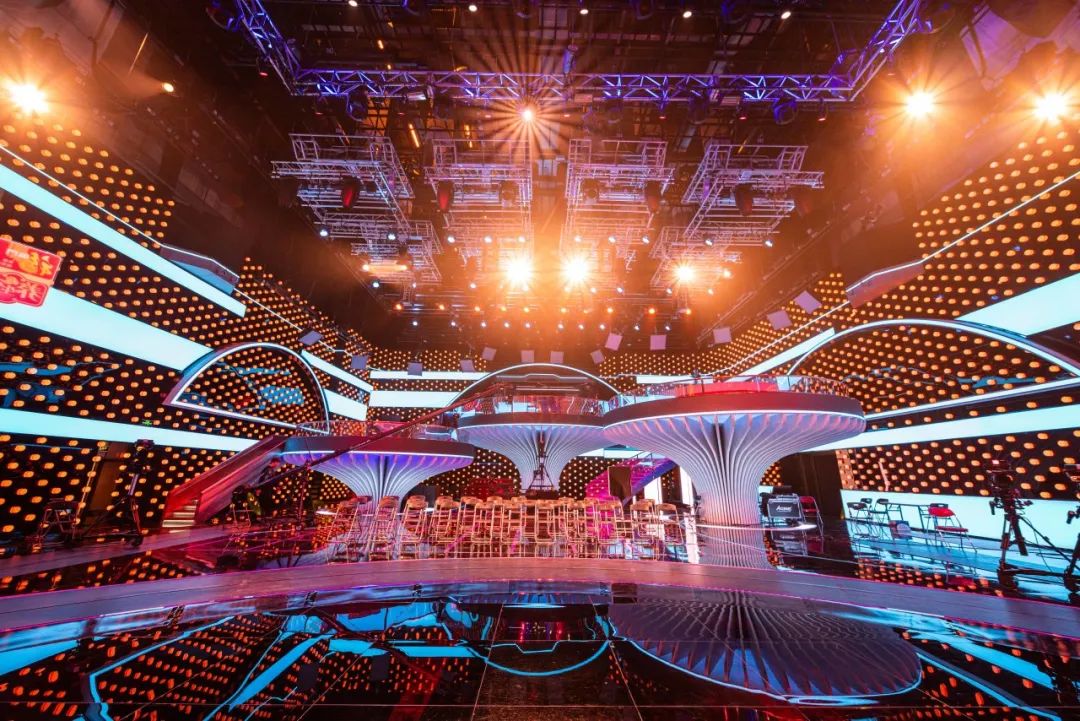 为应对原生 4K 超高清节目的直播与录播,北京广播电视台 1000 平米演播室进行了 360 度全面焕新。改造打破了传统演播室的平面布局,进行了双面舞台设计 —— 让 1000 平米演播室长出了三朵“蘑菇”,它们大小不一、高低错落,实现了演播室的多景区录制,为不同类型栏目打造样态多变的对话场域。