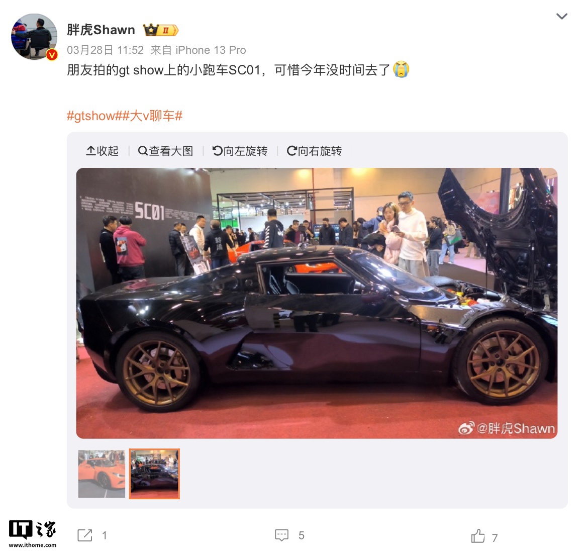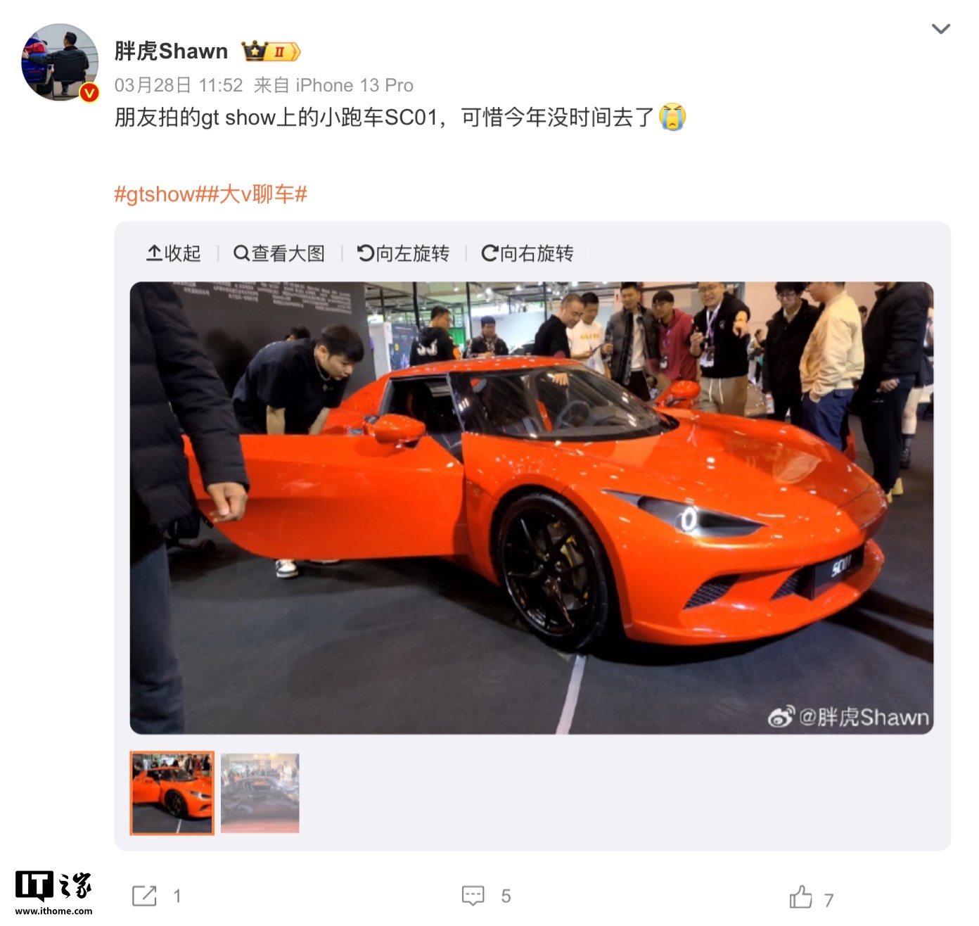 IT之家 3 月 29 日消息,国产品牌“小跑车”创始人晓彤在微博发文宣布旗下小跑车 SC-01 现已在苏州国际博览中心亮相,该车定位为纯电动两门两座硬顶跑车,已在 2022 年 9 月已宣布开启预订,预订意向金为 199 元。