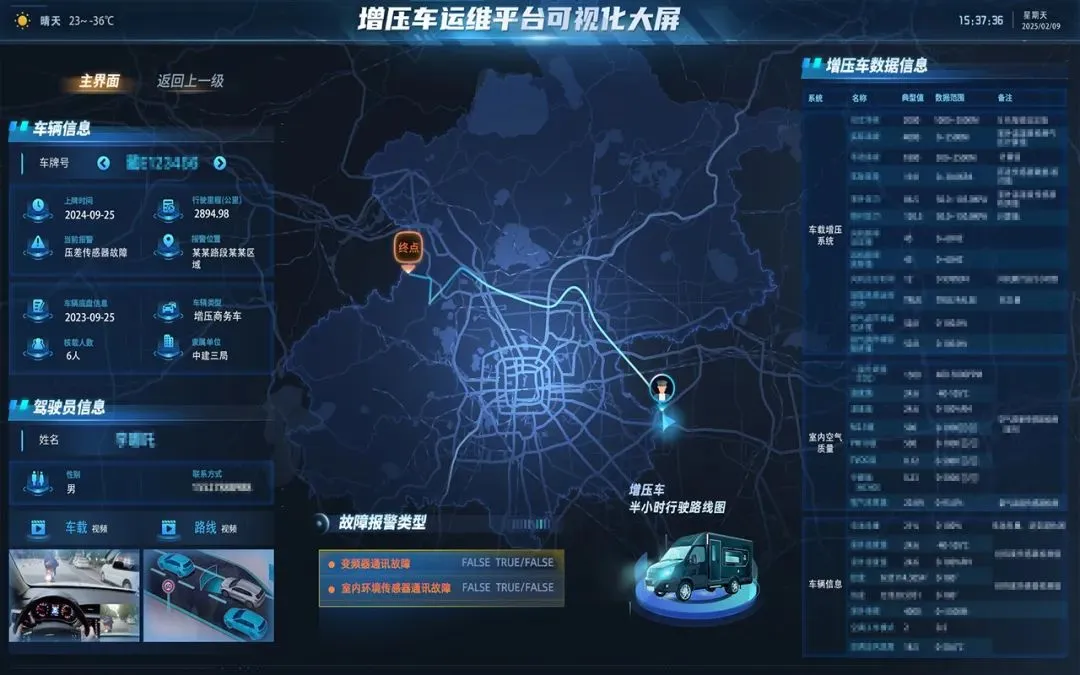 增压车的车身采用轻质高强结构 + 安全冗余设计,号称碰撞安全性高,可保障乘员安全。车辆还接入开发智慧监测平台,可实时监控运行状态,全天候响应。
