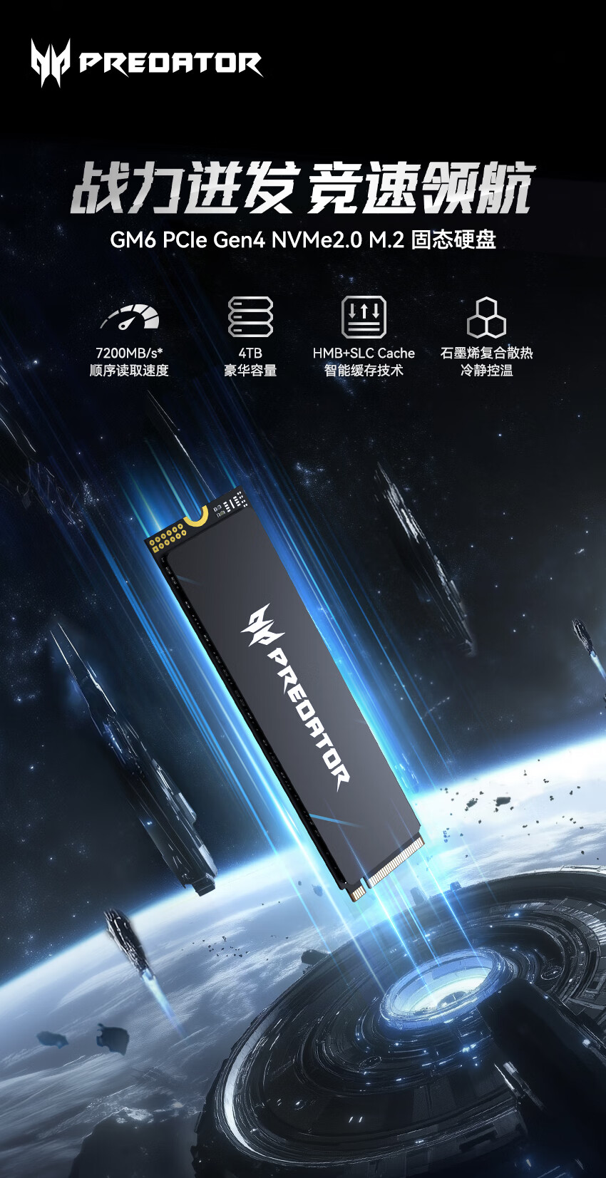 IT之家 3 月 31 日消息,宏碁掠夺者存储本月 21 日推出了采用 M.2 2280 单面 PCB 设计的 GM6 固态硬盘。该 SSD 采用 PCIe 4.0×4 接口,符合 NVMe 2.0 规范,顺序读取可达 7200MB/s。