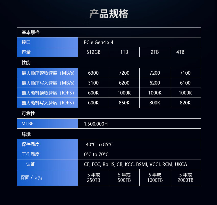 宏碁掠夺者存储 GM6 各容量版本具体参数可见下表: