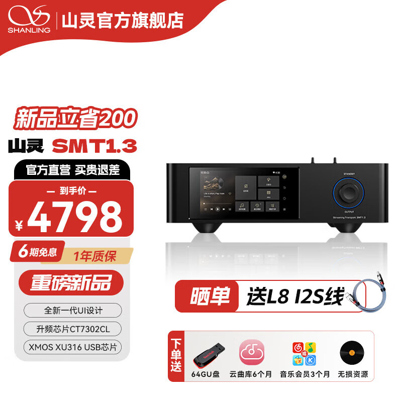 IT之家 3 月 31 日消息,山灵 SMT1.3 台式流媒体转盘今日上市,搭载 31W 定制线性环形变压器与 XMOS XU316 核心芯片,配合双频 WiFi6 高速传输。3 月 31 日-4 月 6 日首发价直降 200,到手 4798 元。