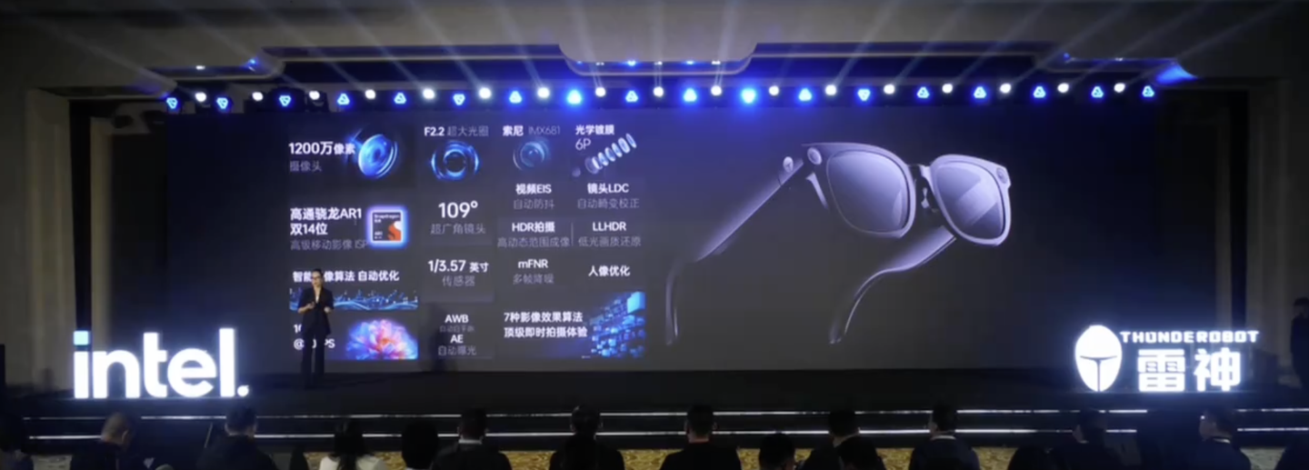该眼镜搭载 4 纳米工艺高通骁龙 AR1 处理器,配备 12MP 1/3.57 英寸摄像头(6P 光学镀膜,支持人像优化),内置 173 毫安时电池,同时配备智能充电仓,可以实现 12 次充电。