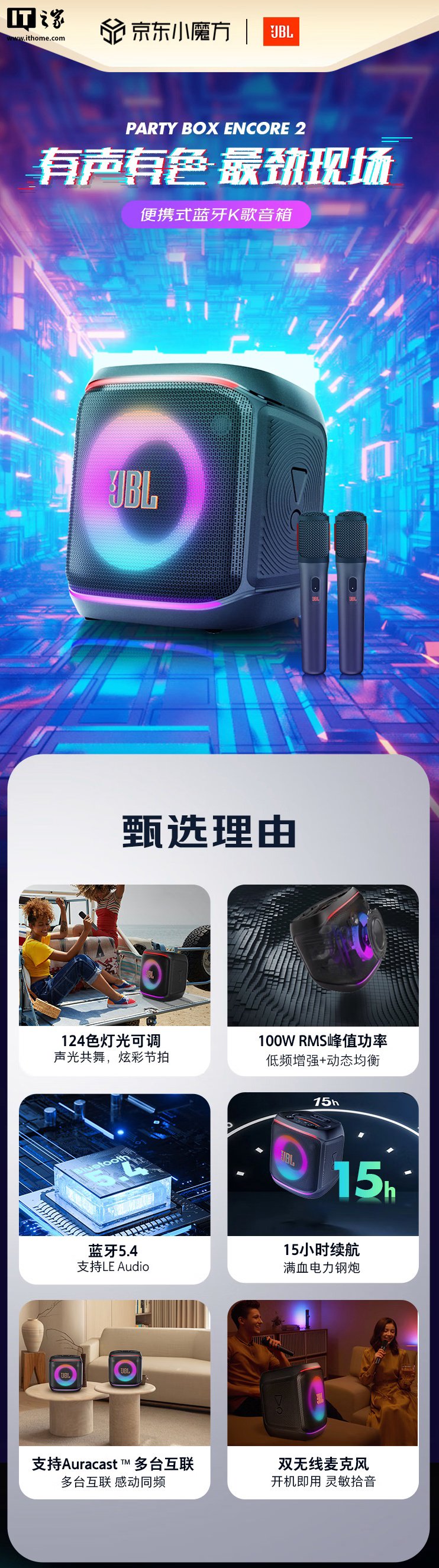 IT之家 3 月 31 日消息,JBL 旗下 JBL Partybox Encore 2(音乐战将欢唱版 2 代)音箱现已在京东开启首销,日常售价为 3699 元,目前可享到手价 3099 元,同时支持 8.5 折国补,国补后 2634.15 元。