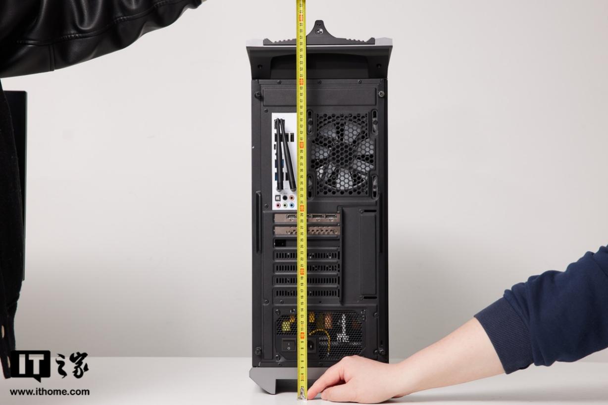 机箱背部做了黑化处理,但主板部分的 I/O 接口面板为白色,有利于用户寻找接口。