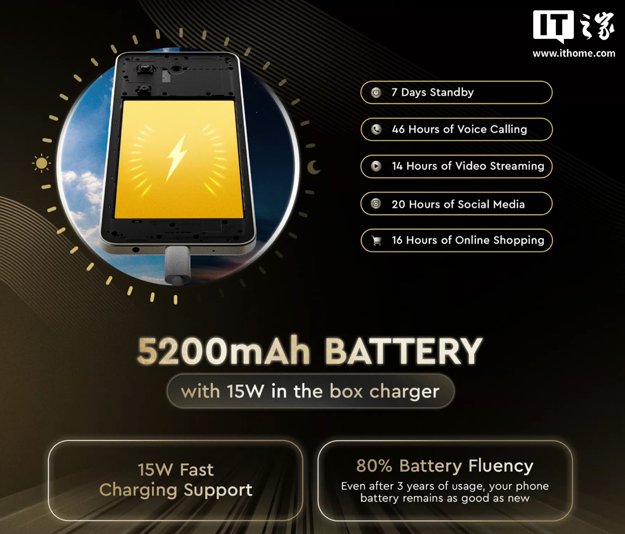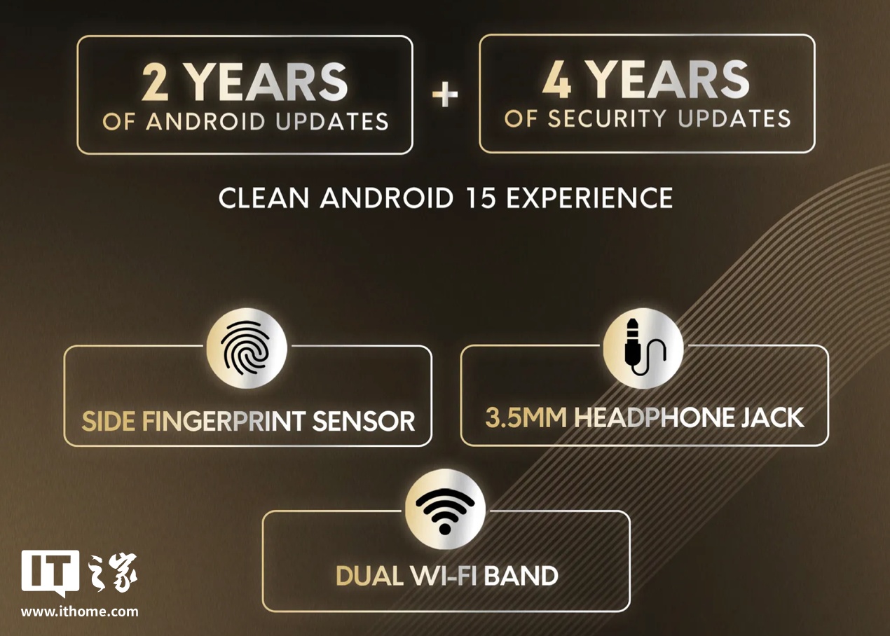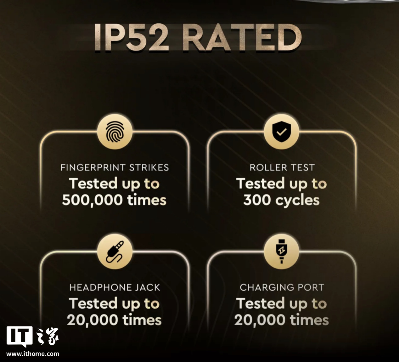 IT之家了解到,该机将获得 2 次安卓大版本更新+4 年安全更新支持,同时根据该零售商所述,该手机通过了 IP52 认证,耳机孔和充电口都通过了 20000 次插拔测试。