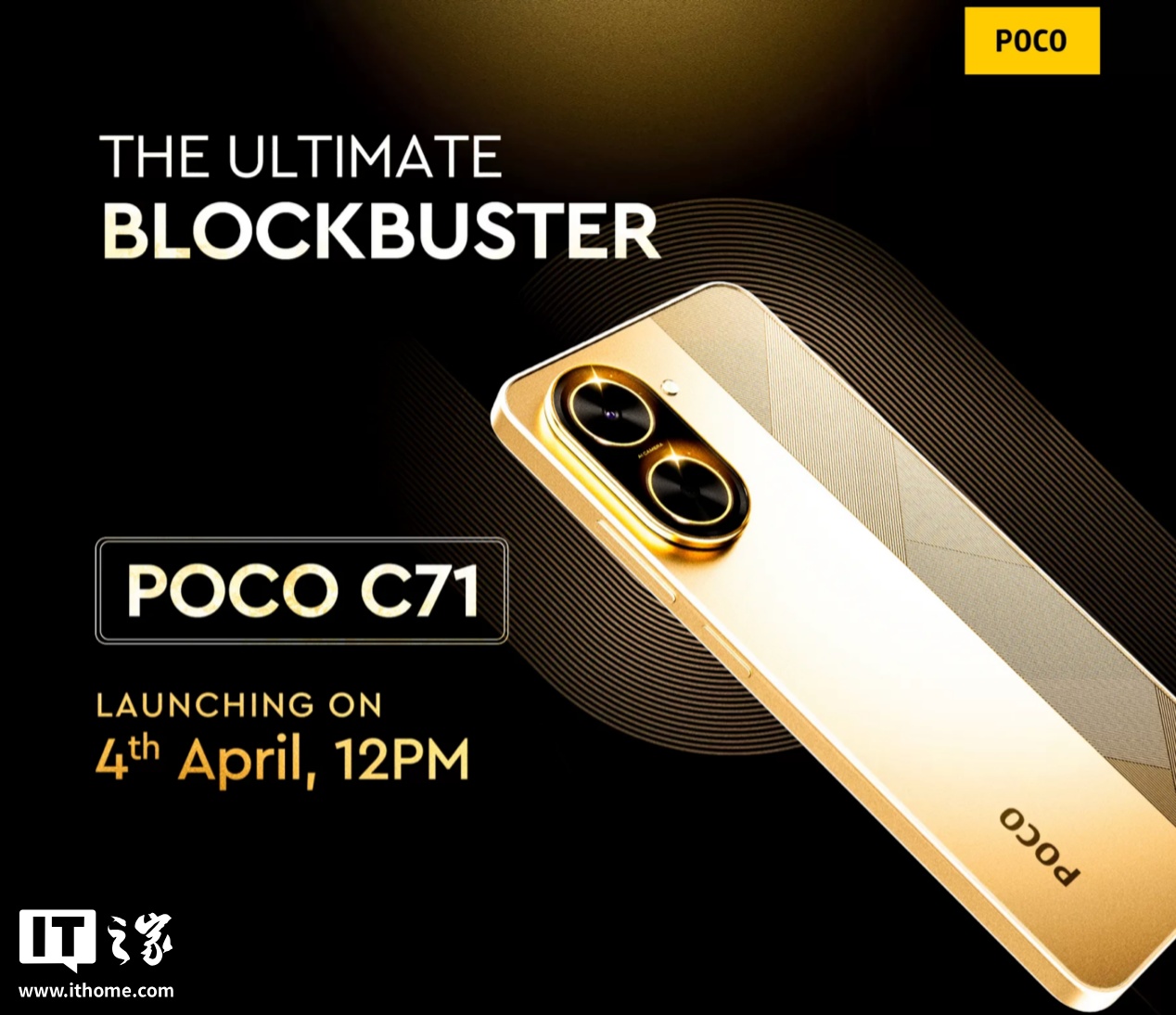 IT之家 4 月 1 日消息,海外零售商 Flipkart 昨日公布了小米 POCO C71 手机的宣传图,并宣布其将于 4 月 4 日正式发布。