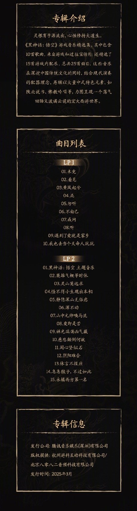 IT之家 4 月 1 日消息,《黑神话:悟空》游戏音乐精选集实体专辑将于 4 月 2 日 11 点发售。