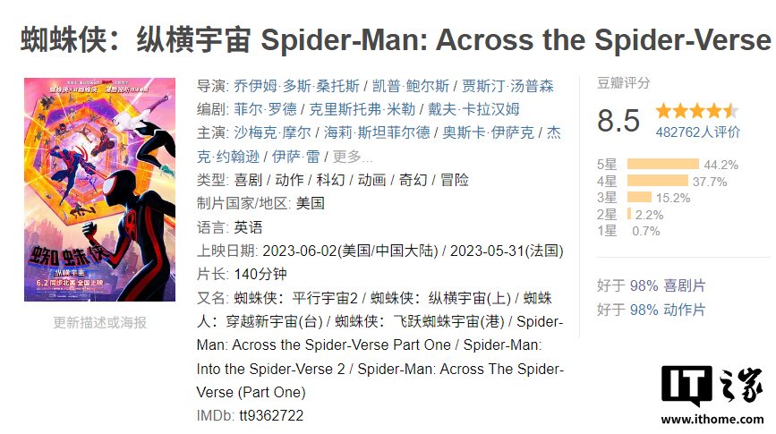 IT之家 4 月 1 日消息,《蜘蛛侠:纵横宇宙》续集《蜘蛛侠:超越宇宙》定档 2027 年 6 月 4 日北美上映。