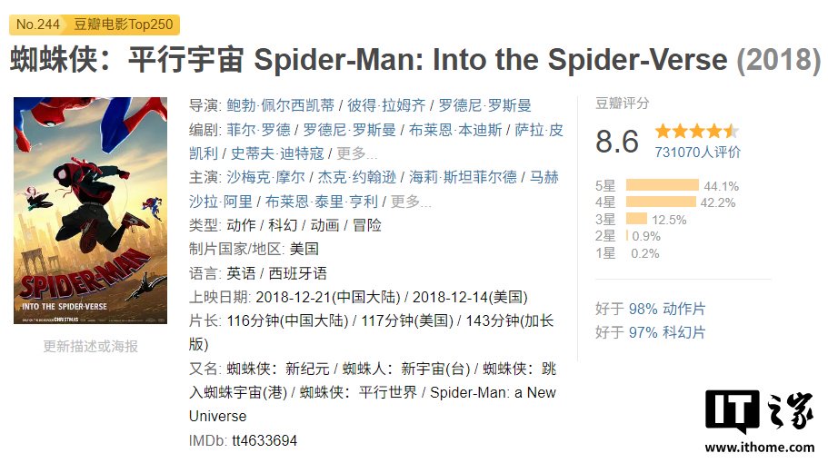 截至IT之家发文,两部电影豆瓣评分分别为 8.6 和 8.5。