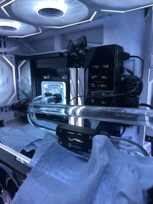 根据这名玩家的描述,他先用电熨斗对 CPU 顶部进行加热,软化 CPU 顶盖的粘合胶,然后用钓鱼线慢慢沿着 CPU 顶部外壳切割,逐步分离顶盖与 CPU 本体,他在经历了多次尝试后才成功移除顶盖,随后他将裸露的 CPU Die 涂上液金,并安装散热器。