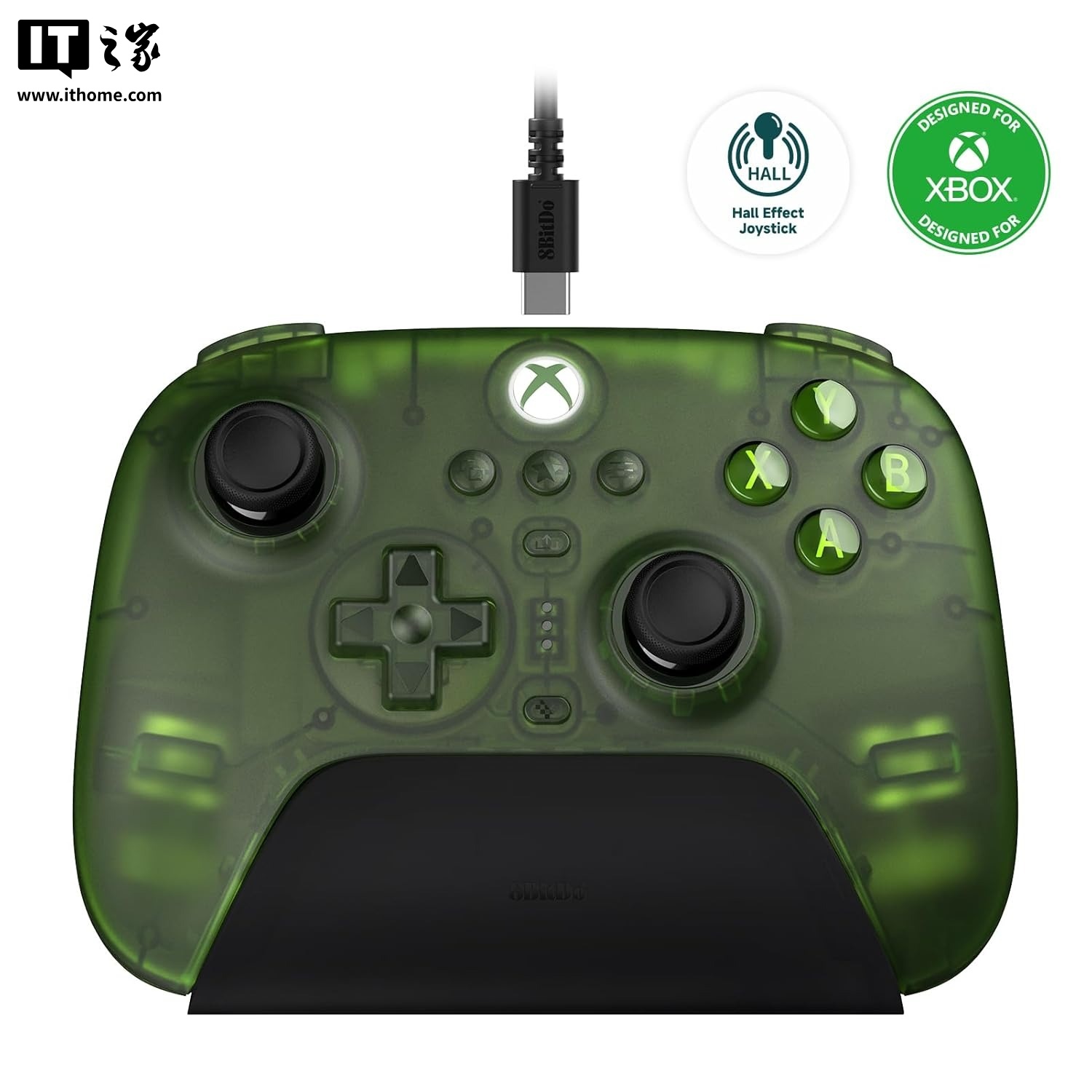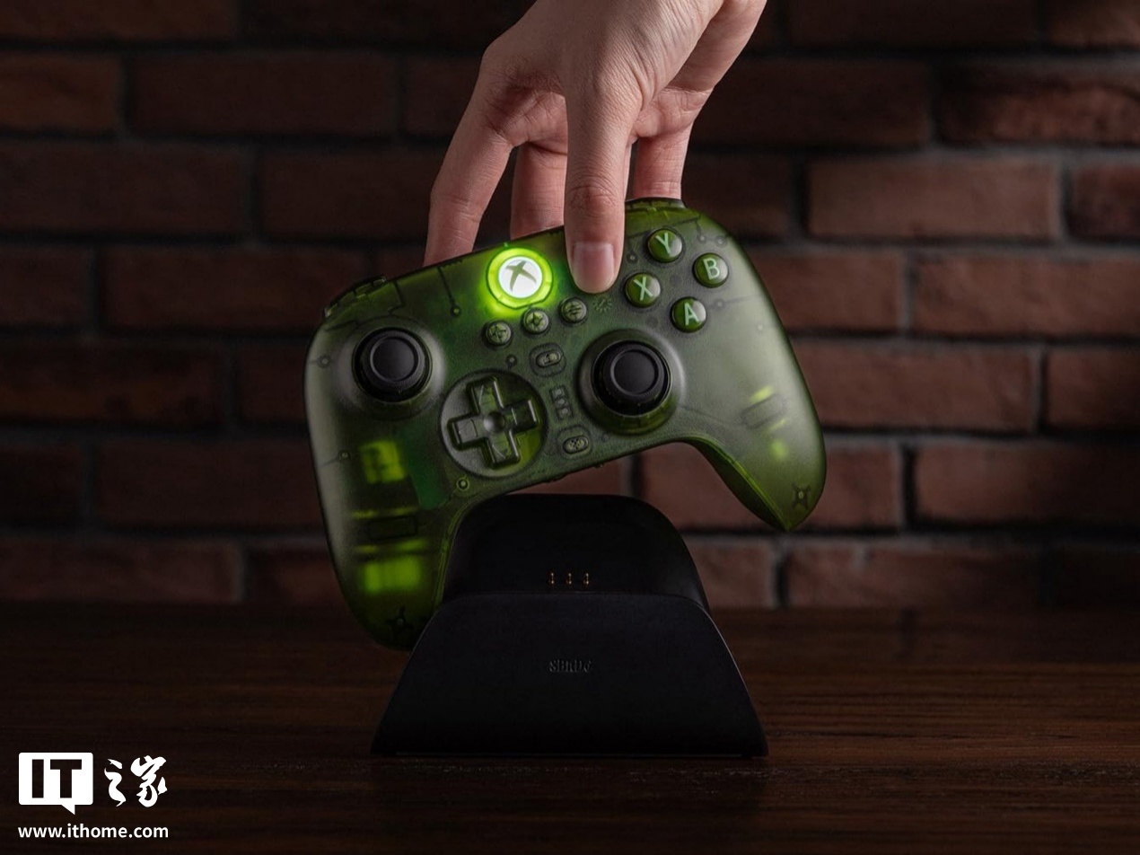 IT之家 4 月 1 日消息,八位堂昨日于其海外官网发布了 Ultimate 三模手柄 Xbox 版,主要更新了透明翠绿配色。