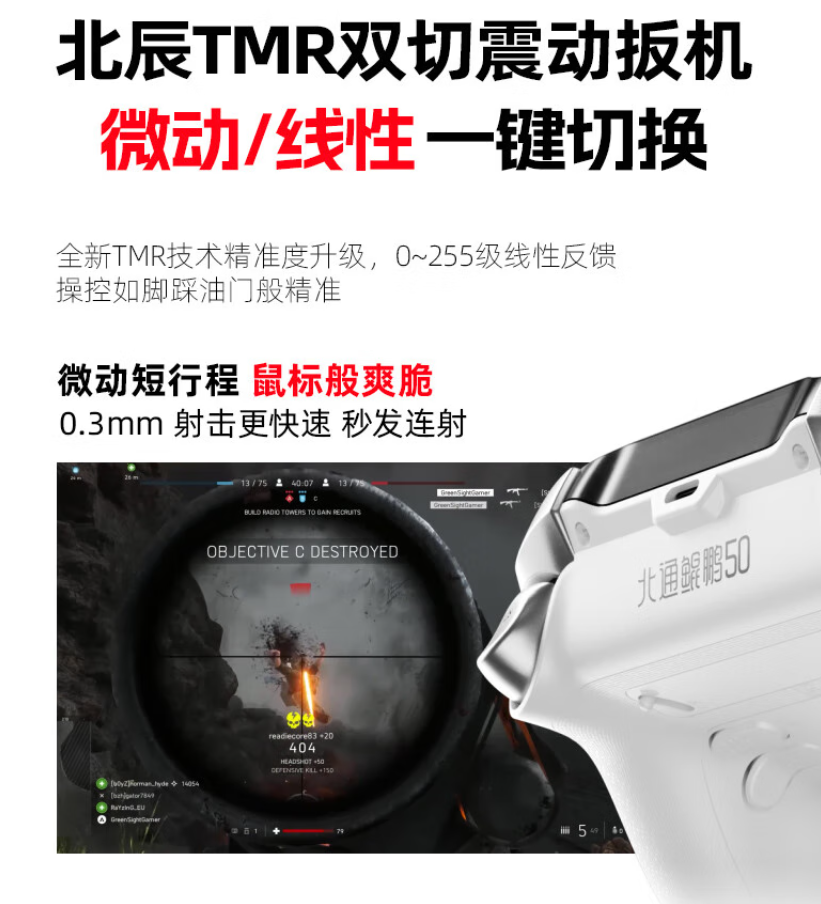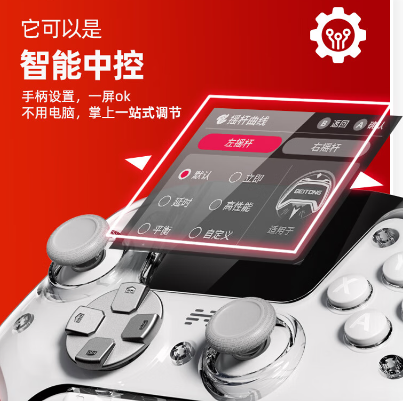 北通鲲鹏 50 游戏手柄发布于今年 3 月,新品手柄升级“智慧屏 2.0”,支持掌上调参数、壁纸自定义、探索赚福袋、小游戏等功能,售价 579 元。