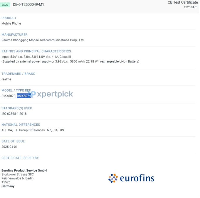 IT之家援引博文介绍,realme 真我 14T 5G(RMX5079)也通过 Eurofins 认证,配备 6000mAh 容量电池。此前消息称该机将采用 6.67 英寸 120Hz AMOLED 屏,搭载 Dimensity 6300 芯片,支持 45W 快充,后置 5000 万像素双摄,并具备 IP69 级防尘防水。预计本月底登陆全球市场。