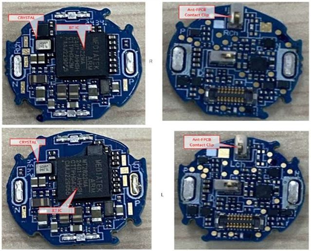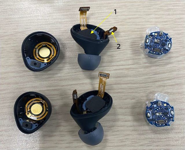 耳机配备双 MEMS 降噪麦克风(前馈 + 反馈),结合 V1 芯片预计降噪效果提升。电池沿用 VDL 和 High-Power 双供应商策略,耳塞电池容量未披露,充电盒电池保持 3.85V / 500mAh 规格。拆解还发现金属屏蔽罩覆盖主芯片,而触控传感器与天线布局基本延续前代设计。