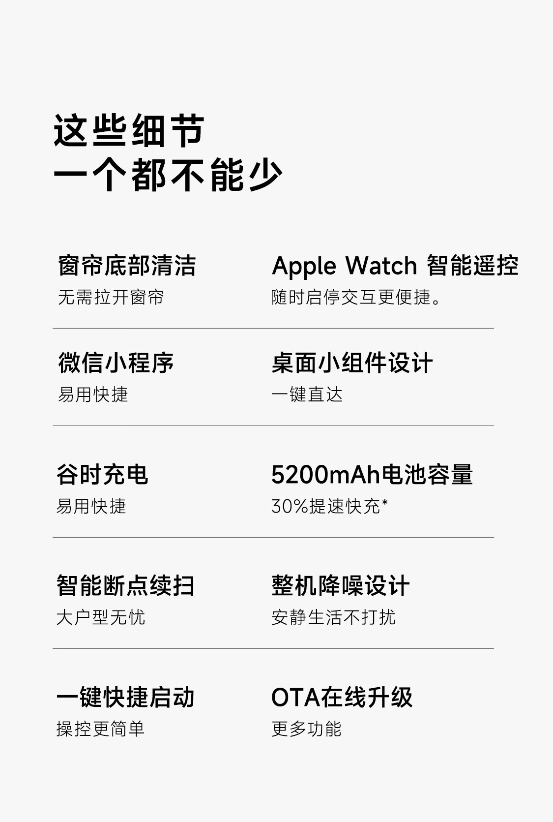 产品还具备 5200mAh 的大容量电池,整机降噪设计,以及 30% 提速快充功能,确保了高效和安静的清洁体验。