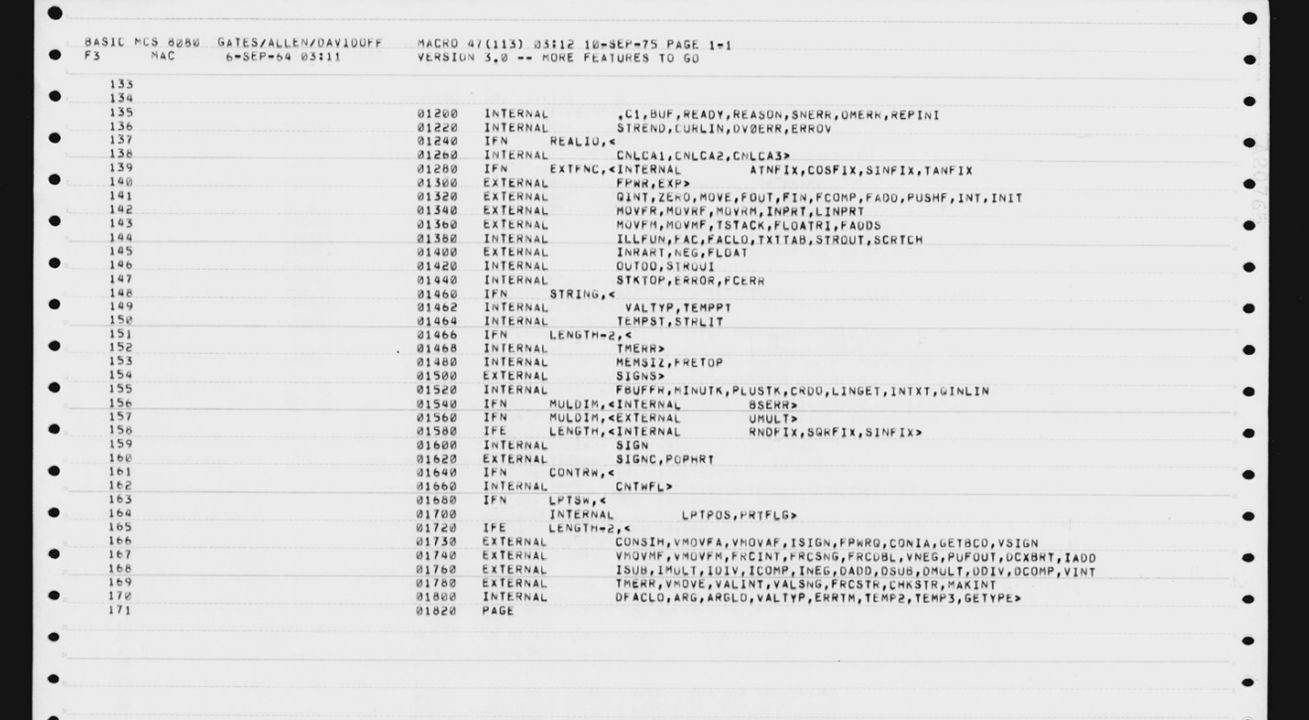 微软于 2025 年 4 月 4 日将迎来成立 50 周年,作为庆祝活动之一,联合创始人比尔・盖茨罕见地公开了 Altair Basic 的原始代码。
