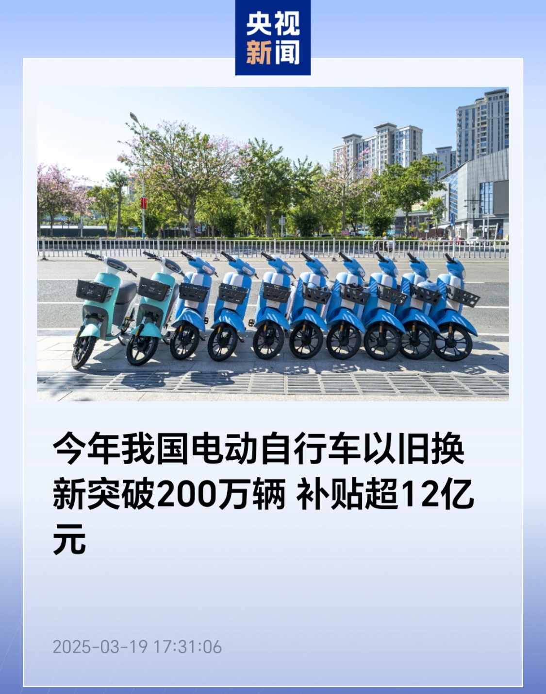 IT之家从央视新闻报道获悉,2025 年 1 月 1 日至 3 月 18 日,我国电动自行车以旧换新共交售旧车、换购新车各 204.4 万辆,带动新车销售 56.1 亿元。