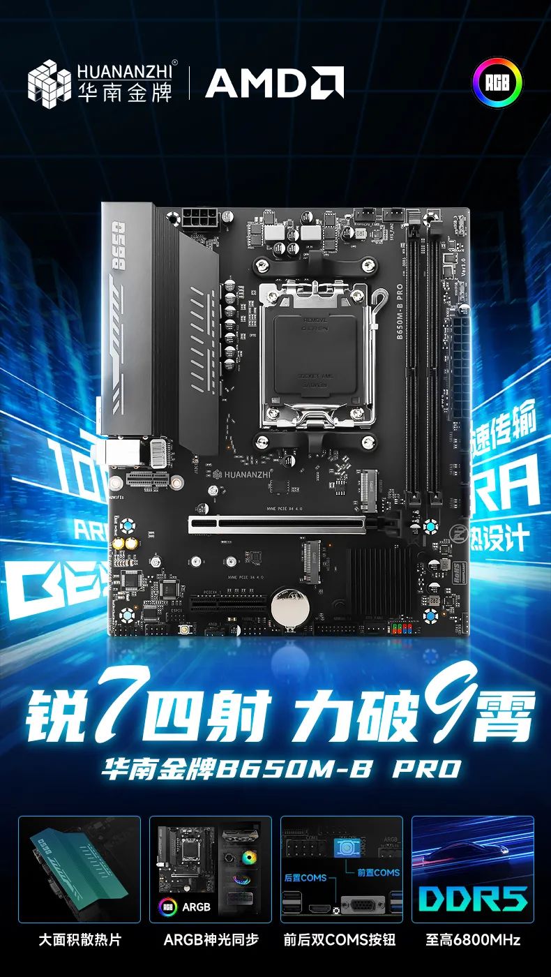 IT之家 4 月 3 日消息,华南金牌今日宣布推出新款 AMD 平台主板 B650M-B PRO,目前在京东显示为 498 元。同时官方店还提供了 R5 7500F、R5 7600X 套装,定价 1498 元、1798 元。