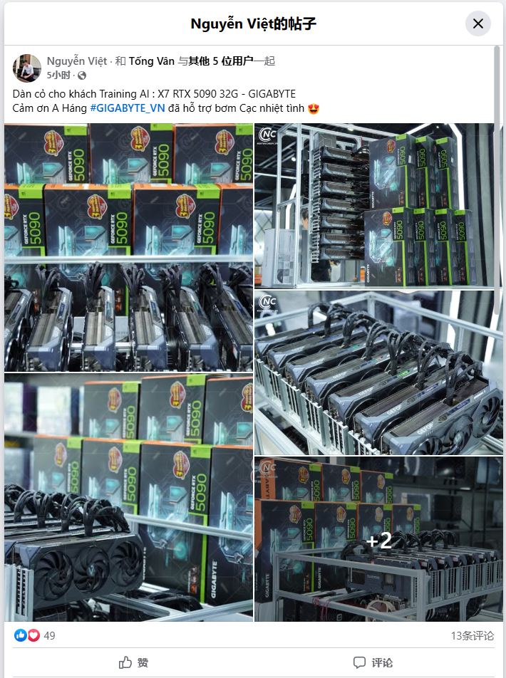IT之家 4 月 3 日消息,I_Leak_VN 今日发现,越南经销商 Nguyencongpc 为客户组装了一套配有七块技嘉 RTX 5090 显卡的 AI 系统。