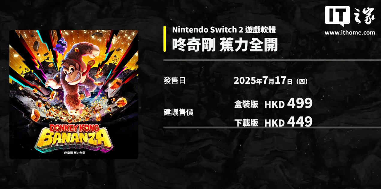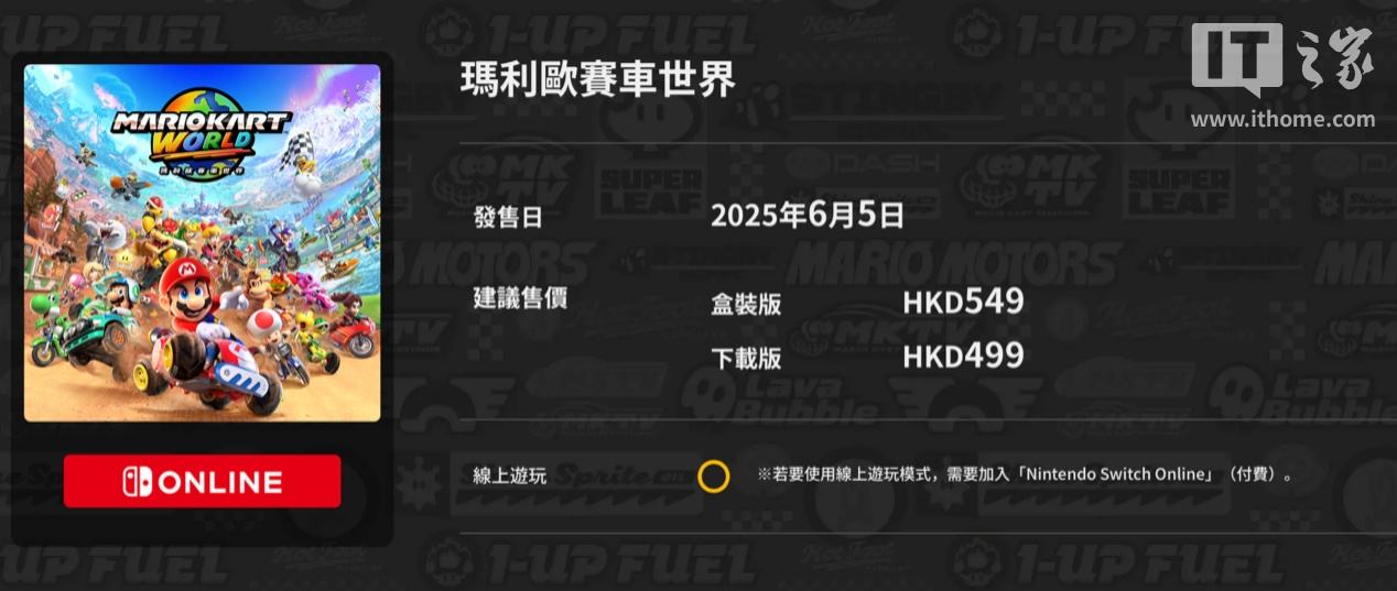 IT之家查询任天堂香港官网后发现,目前公开价格的两款任天堂 Switch 2 游戏(《马力欧赛车世界》和《咚奇刚蕉力全开》),实体版均比数字版贵 50 元港币。