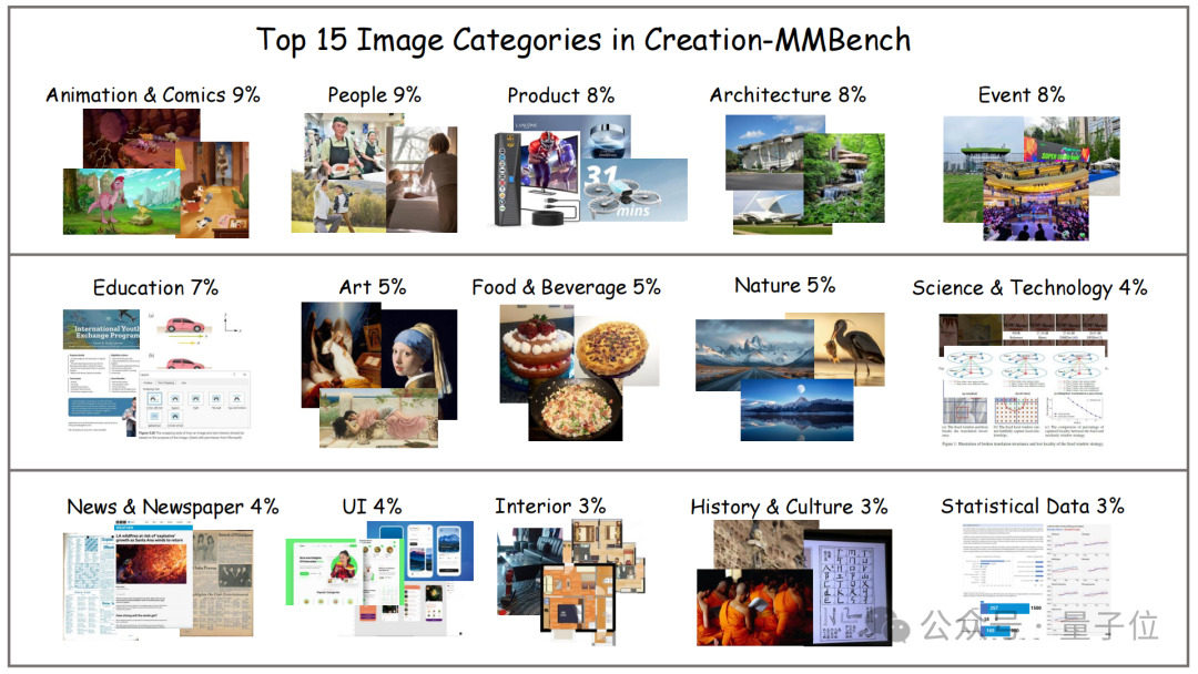 千张跨域图像:在图像上,Creation-MMBench 横跨艺术作品、设计图纸、生活场景等近 30 个类别,涉及千张不同图片。单任务最多支持 9 图输入,逼真还原真实创作环境。