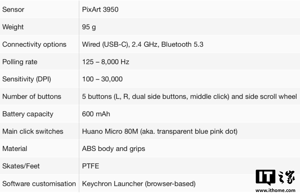 IT之家附该鼠标详细参数: