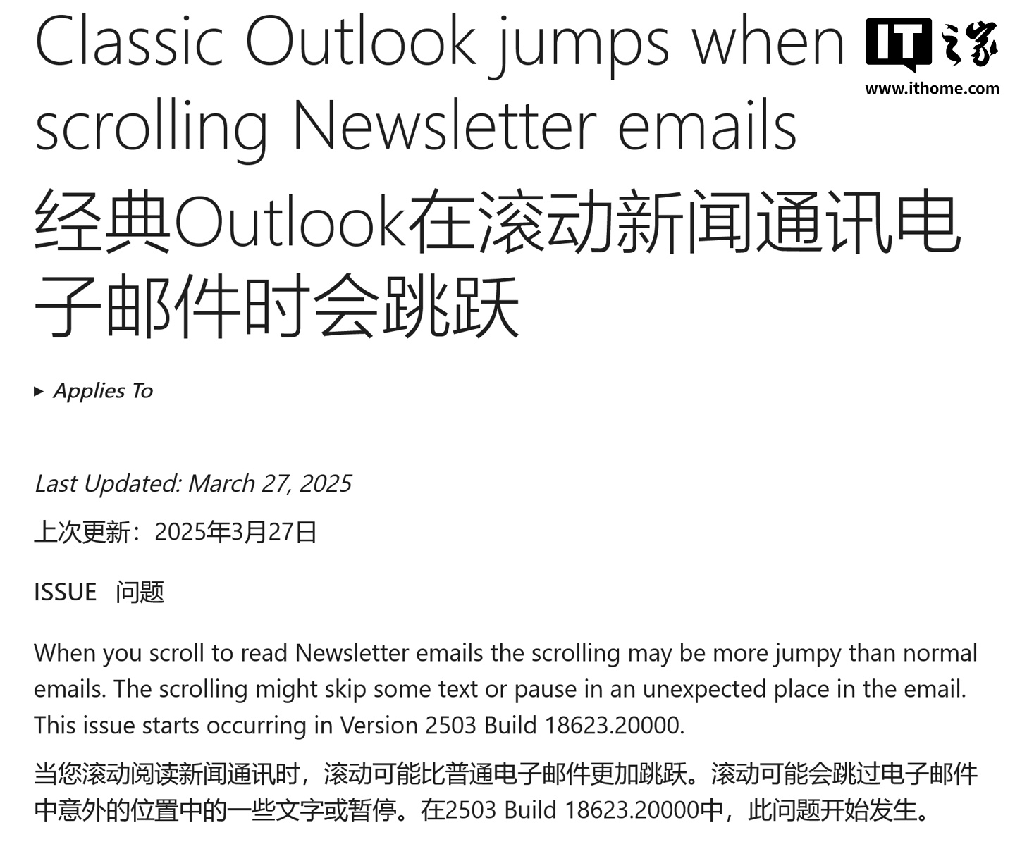此外,经典版 Outlook 的新闻邮件(Newsletters)滚动时可能出现卡顿或跳行,微软建议关闭“高级排版”功能以缓解问题。