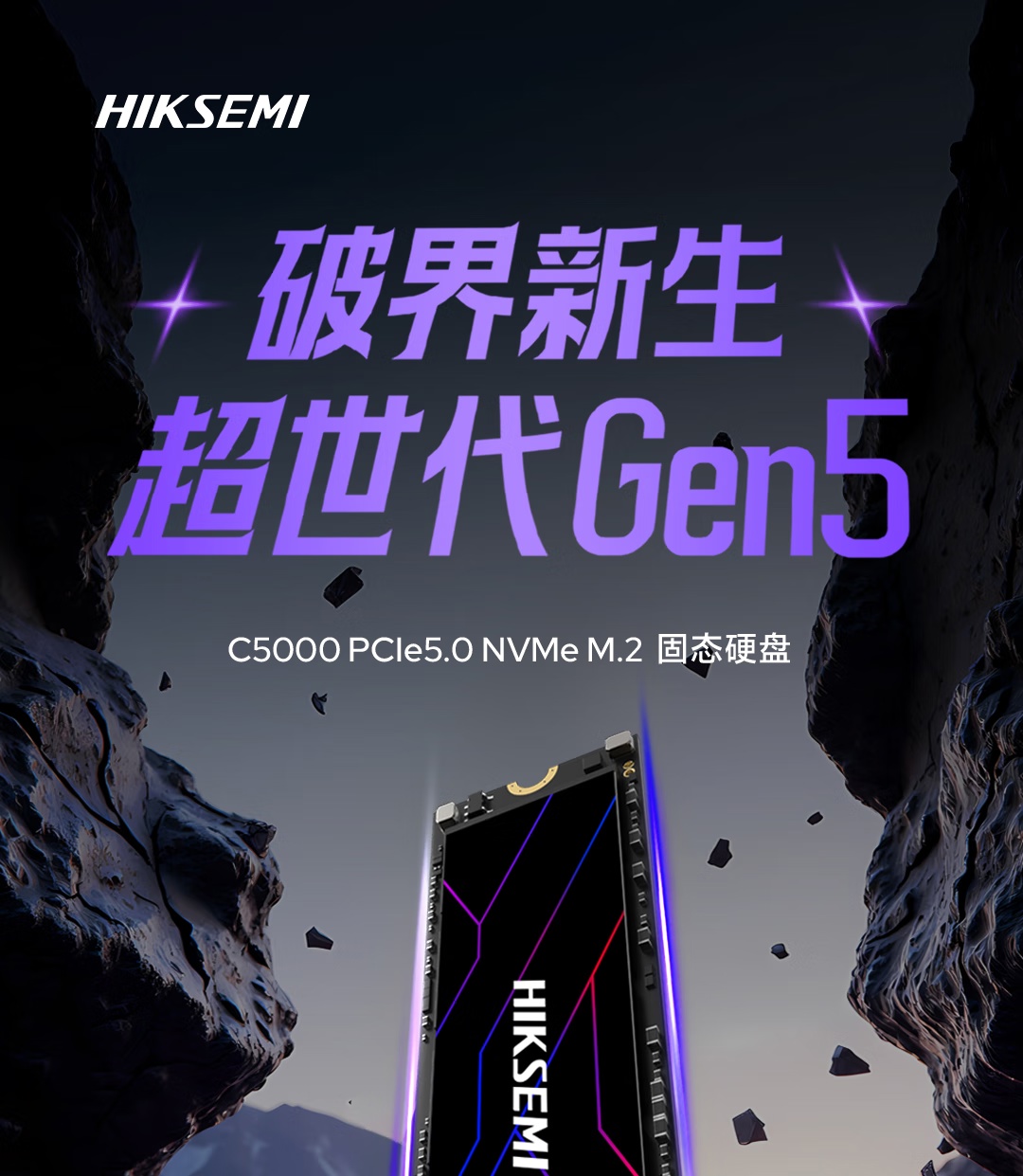 IT之家 4 月 4 日消息,自从上个月底开始,就不断有人爆料称海康威视将推出新一代 PCIe 5.0 旗舰级固态硬盘 C5000,号称是“首款满速 Gen5 无缓 SSD”。