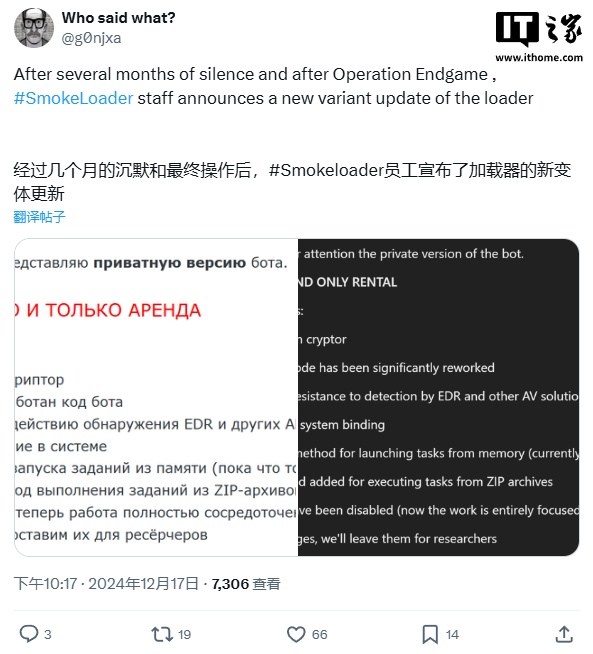 感染后,该恶意软件会连接远程服务器下载木马程序,盗取用户密码、登录凭证或其他敏感数据。研究人员指出,其技术细节与 SmokeLoader 恶意软件存在相似性,可能是去年年底出现的新型变种。