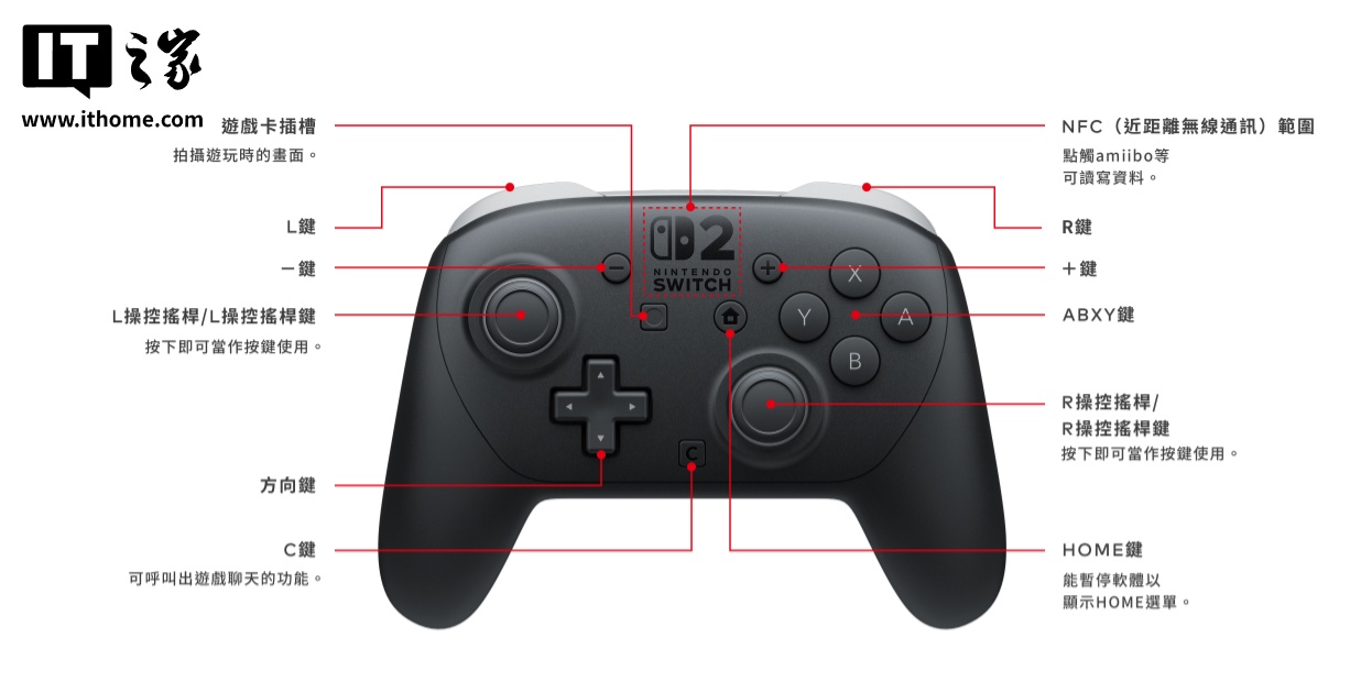 IT之家 4 月 5 日消息,在 4 月 2 日举行的任天堂 Switch 2 发布会上,官方公布了 Switch 2 的新款 Pro 手柄,主要增加背键、3.5mm 音频接口和 C 键。