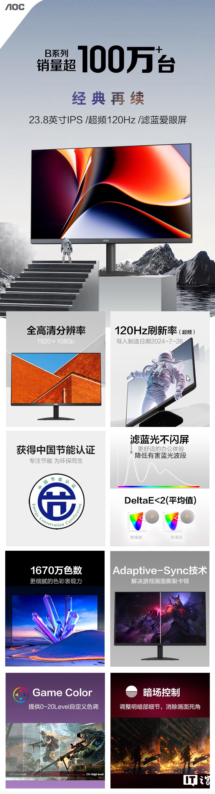 IT之家 4 月 6 日消息,AOC 现已在京东上架新款“24B35H”23.8 英寸显示器,主要升级为 1080P 120Hz 超频,定价为 469 元,国补后 399 元。