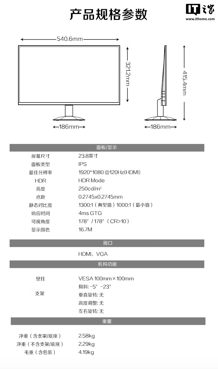 IT之家附显示器参数信息如下: