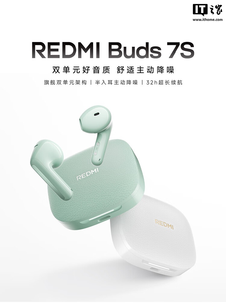 IT之家 4 月 7 日消息,小米旗下 REDMI Buds 7S 半入耳主动降噪蓝牙耳机已开启预约。这款耳机采用旗舰双单元架构,拥有 32 小时续航,售价 199 元。
