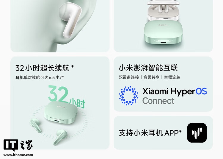 REDMI Buds 7S 耳机单次续航时间可达 6.5 小时,搭配充电盒使用,总续航时间可达 32 小时。充电 10 分钟,即可支持听歌 2 小时。